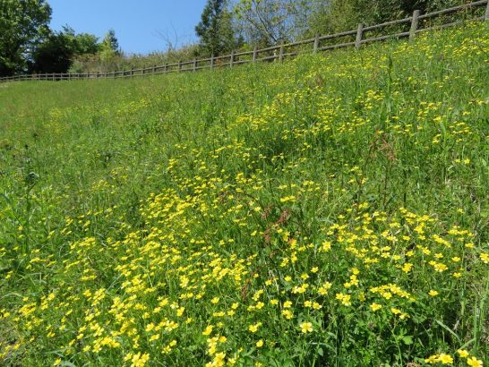 本日、朝10時過ぎ、珈琲を淹れたが愛用のコーカップがない。食器棚にも、食洗器にも、自分の部屋にも、店の机にもない。「はて?」と考えたが、最後に使った状況が思い出せない。仕方ないので有り合わせのカップで。昼食のときにも慣れないカップ。午後3時過ぎのコーヒータイムにも、あちこち探したが、見つからないので慣れないカップ。    夕刻の散歩から帰ったら、家内がニヤニヤしてマイカップを差し出した。どこに?と訊いたら「電子レンジに、牛乳を入れたまま」だったとのこと。昨日の昼にでも?牛乳を温めて飲むつもりが、別のグラスで冷たいのを飲んだ?のではないか? 現物を見せられても思い出せない。う~ん、だんだんこーゆーことが増えてゆくのか、な…(-_-;)?。           ・写真①本日昼前散歩。野球場外野の咲黄色い可愛い花。②③昼前散歩。輝く若葉。   ④夕刻散歩にて。芝生の広場に忘れられたサッカーボール。ぽつんと夕日を受けていた。