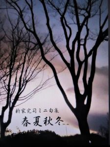 (以下は昨日アップしたのと同じ記事です) 川柳塔WEB【ミニ句集】、これまでに森山文切さん・井丸昌紀さん・澤井敏治さんの3名がアップされていますが、続いて不肖私の【春夏秋冬】と題した50句が加わりましたのでご報告申し上げます。【川柳塔】を検索【ミニ句集】をクリックしてご覧ください。すべて拙句集「平成シリーズ」で発表済みの作品です。ご意見など、コメントもご遠慮なく入れてください。写真上:ミニ句集の表紙。横長の写真をサイト管理人の文切さんがカットしてレイアウトくださった。
