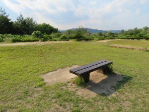 はい、先代の「考える椅子」のとき、座った人の足を置く場所が凹んで、雨が降ると水溜まりになっていました。これでは雨上がりには座れないので、土を入れたようです。ですからそこだけ草が生えていません。かなりの人が座っているのでしょうね。