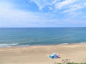 午後3時前に帰宅後、塔事務所や心当たりに「Aさんから何か聞いていないか?」TELしていたら、「数日前にサ高住へ出かけたという同人がいるらしい」という情報を得たので、その同人にTEL。だが、やっぱり「友人と2人で事務所と談判したが、入院先は教えて貰えなかった」とのこと。何か込み入った事情があるのかも知れないが…。あとは管理事務所からAさんに「入院先をお報せしていいか?」と確認してもらうしかない。                             写真上①、帰路の午後2時ごろの定点観測「白兎海岸」、下のテントが次の写真に繋がる。 ②、若い男女が海の中でバレーをしていた。