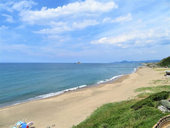 午後3時前に帰宅後、塔事務所や心当たりに「Aさんから何か聞いていないか?」TELしていたら、「数日前にサ高住へ出かけたという同人がいるらしい」という情報を得たので、その同人にTEL。だが、やっぱり「友人と2人で事務所と談判したが、入院先は教えて貰えなかった」とのこと。何か込み入った事情があるのかも知れないが…。あとは管理事務所からAさんに「入院先をお報せしていいか?」と確認してもらうしかない。                             写真上①、帰路の午後2時ごろの定点観測「白兎海岸」、下のテントが次の写真に繋がる。 ②、若い男女が海の中でバレーをしていた。
