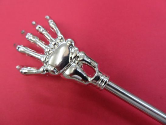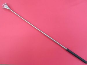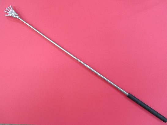 写真下:説明するまでもなく、これは旅行などに携帯できる伸縮式のマゴノテ。ディスプレー台には「ホラー・マゴノテ」と書いてあった。縮めた長さは22センチ。いっぱい伸ばしたら59センチもあった。背中を掻くだけだったら全長は40センチで充分なので、縮めた長さを16センチぐらいにしてくれたらペンケースに入るのだが…。しかし、句会の最中に背中が痒くなることなんてそう再々はないか…(-_-;)
