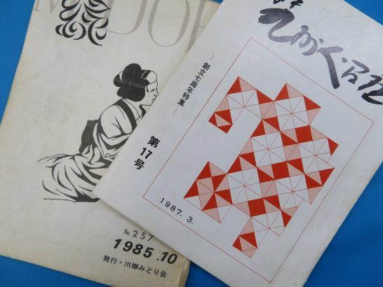 本日、外出予定のない雨の日曜日。デスクワークが一段落してから本棚の整理。2度と手にすることはないと思う古い冊子などを思い切って断捨離。だが、このように片付けるたびに「これは捨てられんな~」と、また本棚に仕舞い込むのが、写真の2冊。1冊は1985年10月の文字がある「川柳みどり会・250号記念の集い」の発表誌。この大会が私の初めての県外遠征(名古屋)。懇親会で石部明さん樋口由紀子さん情野千里さんたちと親しくなった思い出の大会。ここでは5句入選だが、その中の2句は下記の①②。