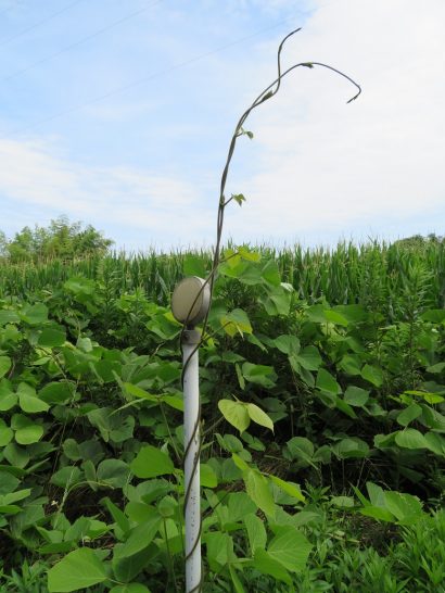 本日、メチャ暑に加えて湿度が高くて猛烈に蒸し暑かった。あまり汗をかかない私も、昼前と夕刻の散歩のあと汗びっしょり。写真上:昼前散歩にて。葛の蔓がポールに巻き付いて行く末を思案していた。下:ウエブサイトをコピーして貼り付けたが、少しサイズが合わなかった? 詳細は下の「トップページへ戻る」をクリックしてください。