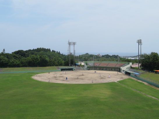本日も快晴。まだ梅雨明けではないようだが、昨日に続いてガンガン照りでメチャ暑! 散歩をしながら「そういえば真夏日を詠った作品が…」と思い出したのが下記の句。 ・ 写真上:昼前散歩にて。総合公園の野球場。体格から見て少年野球のようだった。