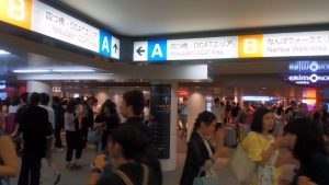 3人と別れたあと、たっぷり時間があったので「難波トーホーシネマ」へ。「君の膵臓を食べたい」という奇妙な題名の映画が時間的にちょうど良かったので「残席僅か」をゲットして入館。ほぼ満席。この映画、ヒットしているとは聞いていたが、内容はまったく知らず。ひと言で言えば純愛物語だが、通り一遍のものではなく楽しめた。当然のことながら、観客の99%は若者だった。映画終了後、独り宴会をしようと思ったが、まだ5時30分で、腹も減っていないので、ホテルにチェックインして入浴、ひと休み。スッキリして、7時に出発。(写真下:ホテル・アウィーナ前の夕焼け。難波地下街の賑わい)