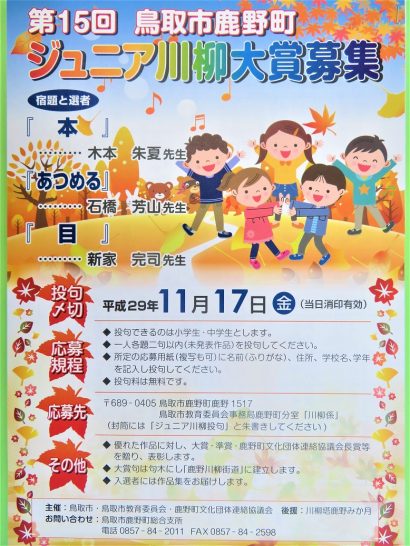 【 第15回 鳥取県鹿野町 ジュニア川柳大賞募集 】