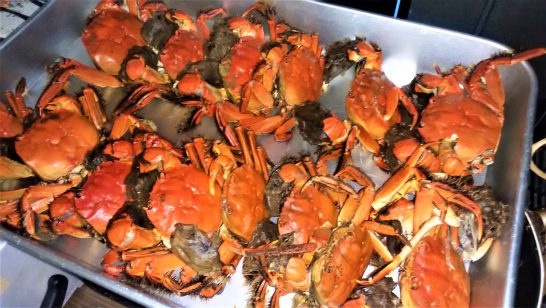 真面目なミニ句集のあとに飲み会の報告は気が引けるが、明日になると「昨日のことなど済んだこと」という気分になってアップする気が失せるので、敢えて。 本日午後7時前より、いつものコンテナハウスにて飲み会。参加者8名。愉快に飲んで駄弁って、9時前バイバイ。運転代行を呼んでカラオケ好きなAさんとおしんへ。水曜日のおしん、いつもの悪友もいて、先客は常連5名ほど。ここでも焼酎湯割り。交代で歌って騒いで11時過ぎににバイバイ。(写真下: 本日の肴のメイン。川蟹の茹でたの。このデカいのを2匹頂戴した。別に蟹飯もあり、これは持ち帰り)