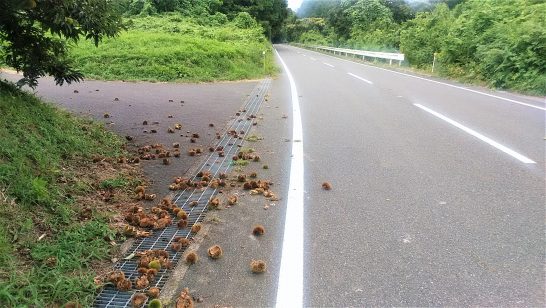 本日、早朝からかなりキツイ風。昼前散歩ではそうでもなかったが、夕刻の散歩になると半袖ではチョッと肌寒いぐらい。夏から秋へ季節を送る風だろう。 ・気がつけば散歩道のあちこちにも秋の気配。いつもの栗の木の下には、実を採ったあとのイガがいっぱい。今年は先を越されてしまった。写真① ②は少し膨らんできたムカゴ。 ③はカラスウリ。いずれも強い風に吹かれて揺れていた。