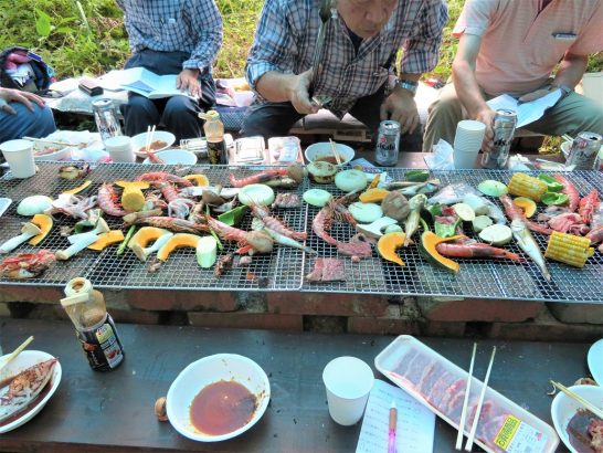 本日、浦安駅に11時30分に集合した川柳仲間は10名。2台の車で山小屋へ。この季節に行う年に1度のバーベキュー。食料&ビール・焼酎・酒などすべてK子さんが段取りしてくださった。いつものことながら、お世話になりましたサンキューべりマッチでした! 炭に火がつくまではしばらく時間がかかったが、その間にカンパ~イ! 途中、小雨がパラパラきたので急遽ブルーシートを張る(写真②)が、すぐに晴れてきた。  ・   網の上には、肉・ハタ・イカ・エビ・カボチャ・玉葱・アスパラ・茄子・ピーマン・椎茸・トウモロコシ。そしてバナナ、Hさんから差し入れのおにぎり🍙と黒ニンニク。 焼酎湯割りが気分よく回った頃に、みんなが提出していた句についてディスカッション。勉強になりました!(ほんまかいな…) 現場に到着したのが12時過ぎ。終了したのが5時前ぐらいだったか? まことに楽しく美味しい5時間だった。