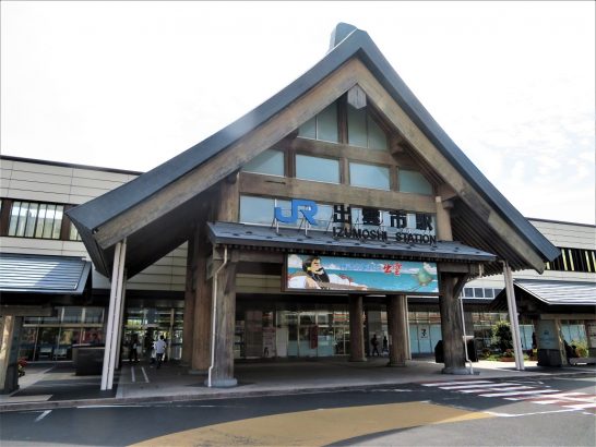 はい、出雲市駅です。全国から参拝客が多いので特徴を持たせたのでしょう。でも、大社参りは観光バスやマイカーが多いので、この駅舎を見たことがない人も多いことでしょう。
