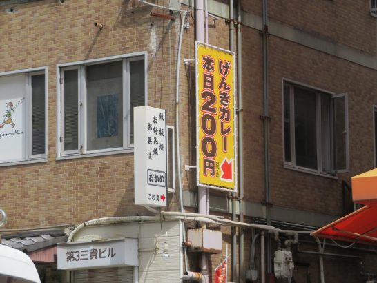 あっ、ほんまや「げんきカレー」で検索したら出てきました。写真まである。これが200円やったら安いですね。「基本はお持ち帰りですが、店内にイーストスペースがあります」とも書いていますね。しかし、これを持ち帰ってアゥイーナのロビーで食べたら叱られるやろね…(-_-;)