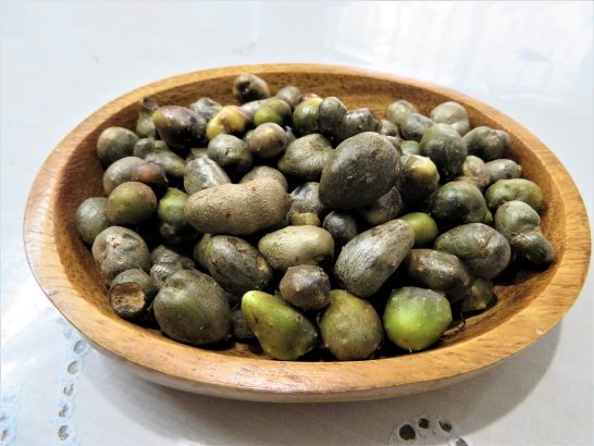 ムカゴ、もう少し秋が深まれば道の駅などで売っているかもしれません。でも、作り長芋のムカゴは苦みが強くて私は好きではありません。見分け方は、作り長芋のは粒が揃って、艶がありません(あるのもあるかな?)。やはり自然薯のが旨いです。たくさん採れたらお送りするのですが、葛などにやられて、年々減っています。