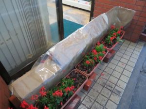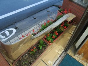 それはともかく、プランターとダンボールとビニールシートの土嚢(変な表現)、なるほど、身近にあるものでいい方法ですね。もちろん、プランターがあればの話ではありますが。