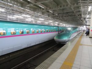 2日(月)、朝7時ごろから朝食。のち、フロントにてバッグを宅配便で送るように手配。軽い手提げ鞄ひとつラクチンスタイルで仙台駅へ。8時16分発の「はやぶさ6号」に乗車。羽田からの飛行機は16:25発なので、たっぷり時間があり。それまで東京見物をする予定。(以後は明日夕刻に報告いたします。写真下は、今朝の仙台駅にて。滑り込んで来た「はやぶさ6号」)
