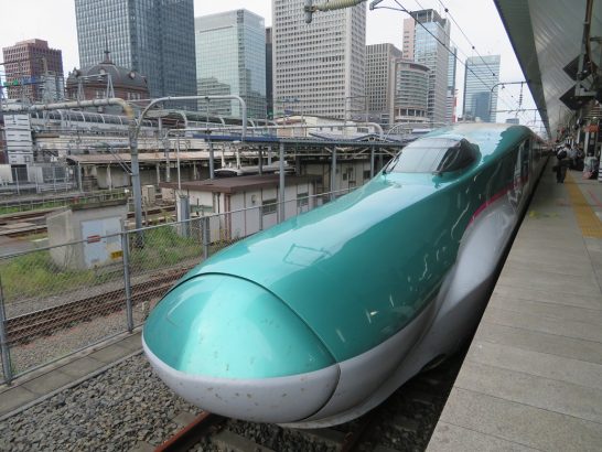2日(月)、朝7時ごろから朝食。のち、フロントにてバッグを宅配便で送るように手配。軽い手提げ鞄ひとつラクチンスタイルで仙台駅へ。8時16分発の「はやぶさ6号」に乗車。羽田からの飛行機は16:25発なので、たっぷり時間があり。それまで東京見物をする予定。(以後は明日夕刻に報告いたします。写真下は、今朝の仙台駅にて。滑り込んで来た「はやぶさ6号」)