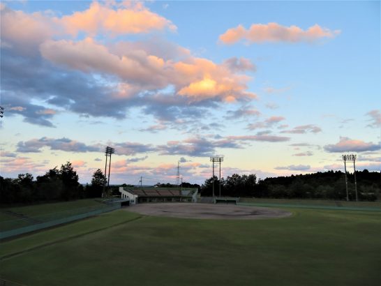 本日、第1水曜日にて医光寺坐禅会例会日。今月から冬時間で5時半開始になったことは知っていた。だが、目覚ましをセットするとき、これまで通り4時半にしてしまった。今朝、目覚めて何も考えず、歯を磨き、顔を洗い、無い髪を梳いて車に乗って、といつものルーチンワークを済ませて、寺の駐車場に5時前に到着。だが、本堂の灯りは点いているのに車は1台もない。(えっ、みんな休みか?)と本堂に向かったら、扉に「第一水曜日、坐禅会、五時半」と達筆の墨書。ようやく気がついて、本堂で待っているのも恥ずかしいし、運転席が温かくて快適なので車に戻って、スマホで友人のブログ探訪などして時間つぶし。ようやく5時25分になって本堂へ。本日の参禅10名(フルメンバー12名のうち2名欠席)終了後、粥と漬け物&茶菓子とお茶、果物を頂戴して7時前に辞去。 (写真: 本日午後5時30分、総合公園野球場の上の夕焼け雲)