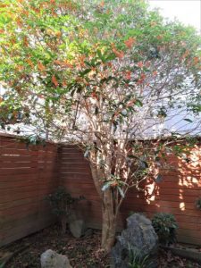 お宅にも金木犀ありますか。拙宅のはずいぶん前に義母が植えたもので、ご覧のように大きくなりました。隣家の屋根や後ろのマンションの壁に枝がこすれているので、町内の「シルバー人材センター」へ剪定を依頼しようと思っています。