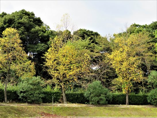 川柳マガジン編集部の17日のブログでも紹介されていましたように、このたび【時実新子の川柳と慟哭】が刊行されました(写真①)。これは、新葉館出版の〔ベストコレクション・シリーズ〕の1冊で、平井美智子さん(川柳塔社同人)の編集によります。 膨大な作品から選び抜いた400余句と豊富な写真も見ものですが、各ページに簡潔に配置されている「新子語録」が極めて興味深い。定価1,200円+税。お求めは新葉館出版へ。 写真②、本日の総合公園にて。遠くから見ると色付いた葉っぱが点描画のように見えた。