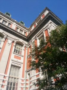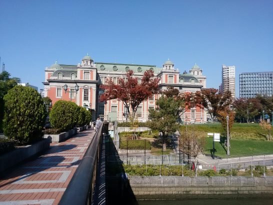 写真①、大阪市役所南の通路。街路樹が色付いて綺麗だった。②、本日の中之島中央公会堂。③もその一角。④、公会堂のすぐ東にある【陶磁器美術館】。今の展示は中国陶磁器(写真のポスター)、だったと思う。
