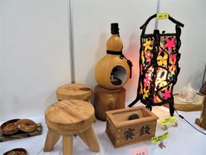 本日は散歩できず。写真もないので、先日観に行った「まなタンまつり」のみなさんの展示品を写したものから5つほど。①陶芸。②竹細工。③木工芸。④活け花。⑤ちぎり絵。