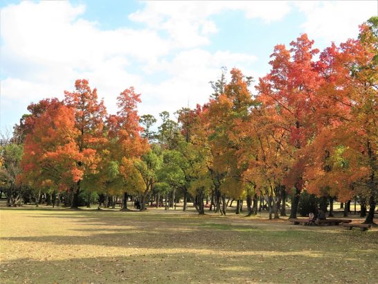 本日、第3木曜日にて【山陽カルチャー】例会日。去年11月例会のとき、通りがかりに横目で見た「総合グランド」の紅葉が素晴らしかったので、今日は早い目に出て、車を駐車場へ止めて、あちこちぶらぶら散歩&パチリパチリ(写真上)。