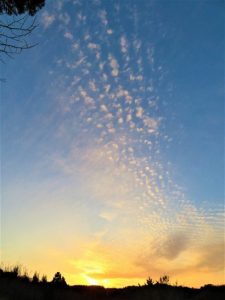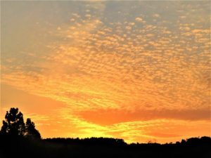 うろこ雲の夕焼け シャボン玉が飛び出しているような、パチパチと音が聞こえてきそうな・・・❗ こんな 夕焼けを見たことがありません!