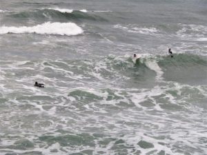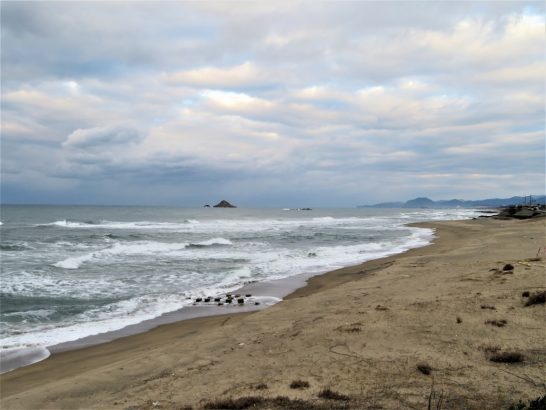 終了後、国道9号線にて鳥取の賀露港へ。写真①②は途中の定点観測「白兎海岸」。3人のサーファーが荒波を楽しんでいた。