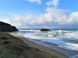 写真の白兎海岸 海が とってもきれいな青ですね。