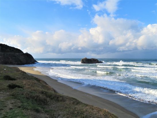 12時30分より葬儀。お寺さん(導師さん)が若い別嬪さんだったのにはビックリ! (洋々さんの葬儀らしくていいな)(洋々さんも喜んでいるだろうな)と感じ入った次第。鳥取市の市会議員を6期(24年)も務めただけに参列者も市長始め議員さんや地区役員など多数。数えてはいないが、親族を入れて300名を遥かに超していたのではないか。弔辞を読み上げたのは3名。そのトップバッターだったが、まあまあ何とかやり遂げた。「簡潔明瞭で良かったよ。ありがとう!」と柩から聞こえたから合格だったのだろう。霊柩車を見送ったときは陽射しもあり寒くは感じなかったが、帰宅したときは外気温4℃、冷たい風も吹いて、本格的な冬の有様だった。写真①、葬儀が終わっての帰路。定点観測の白兎海岸イーストサイド。②、同ウエストサイド。この時点ではまだ陽射しがあったが急激に曇って細かい雪まで降ってきた。下は弔辞の中で読み上げた洋々さんの作品。