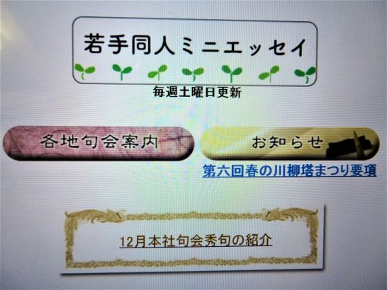 川柳塔、元気度だけは1番でありたいと思っています。幸い、秘密兵器がWEBサイトを活性化してくれています。