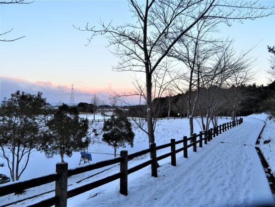 本日、午前中は小雪が絶え間なく舞い散る寒い日だった。雪国の豪雪とは比較にもならないが、拙宅前も朝方は雪景色だった。昼過ぎには雪も止んで、路面の雪もなくなっていた。終日どこにも行かずデスクワークに専念。だが、うまい晩酌を飲むために晴れ間が見えてきた夕刻に散歩。車の外気温インジケーターでは2℃。総合公園内の遊歩道ではまだ雪が残っていた(写真上)。手袋を外して写真を撮っていたら指がギンギンに冷えてしまった。明日も降るらしいが、お手柔らかにお願いしたいものである。室内をウロチョロと夕刻散歩で4533歩。