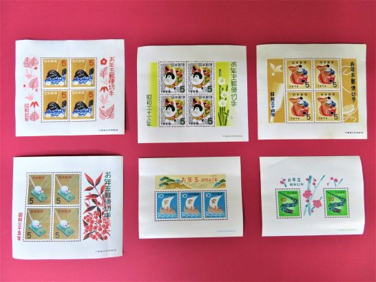 ちなみに、いちばん高価だったのは昭和25年のもので1級品40,000円、2級品18,000円でした。これが最初のお年玉切手シートのようです。