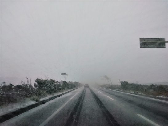 本日、第1日曜にて「川柳塔鹿野みか月川柳会」例会日。早い目に昼食を済ませて12時15分出発。午後1時過ぎ会場着。写真①浜村海岸ウエストサイド。②イーストサイド。昼迄は青空が見えたが、帰路には雲に覆われ9号線は吹雪で視界も最悪(写真下)。