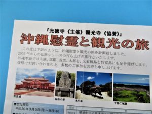 明日から8日まで沖縄に出掛けます。これは、坐禅会でお世話になっている医光寺さんがこれまでに主催してこられた【仏跡参拝旅行】の流れで、初めての国内旅行。昨年までで12回。遠方ではインド3回&スリランカなどあちこち。しかし、私自身、エコノミー席で5時間も6時間も乗っているのは辛くなって、もう「海外旅行はパス」という気分となり、これが坐禅会主催の旅行としてはシメになる予定です。なお、明日からのブログは、就寝前にホテルの部屋から更新できると思いますが、アバウトな予定は次の通りです。