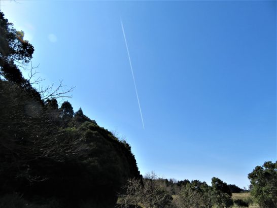 本日、最高気温20℃という予報だったが、鳥取市では23℃を超していたとのこと。室内よりも外気のほうが暖かだったので窓を開け放って気分良好! 写真、昼前散歩での「こども公園」どこかの保育園のグループ?親子で賑わっていた。写真の下の方で親子が指さしている方向を見ると、見事な飛行機雲だった。