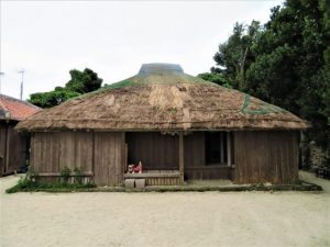 那覇空港9:30 → 10:30新石垣空港着 → 鍾乳洞見学・写真上①②③ → 石垣やいま村見学・写真下、④牧志家、⓹民家の中で「名物おばあ」が踊っていた。