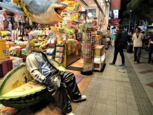 午後6時より、川柳塔ウエブサイト管理人の森山文切さんとホテルロビーにて【ウエブサイト推進沖縄会議】。議事いろいろあったが、30分ほどで終了。午後7時より、【沖縄料理ちぬまん】にて夕食(写真下①②③)。生ビールで乾杯後は泡盛ボトル。お湯割りとオンザロックで。1本目のボトルは軽く空いたが、2本目は半分ほど残ってしまって、頂戴して帰る。その後、国際通りを冷やかしながら散策(写真下④~⑧)。散策している観光客の半分以上は外国人(韓国・中国・台湾・欧米)という印象。ホテル帰着は10時前。よく歩いて足が疲れた。本日歩数11,843歩。