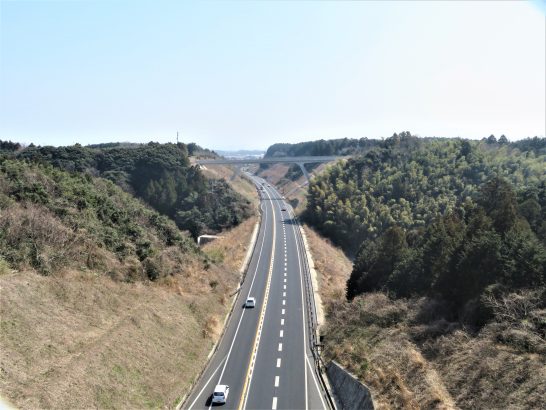 跨道橋からの眺め、抜群でしょう。高低差がかなりありますので、好天のときは東も西も遥か遠くまで見渡せて気分爽快! この場所、いつ行っても車も来ず、誰にも会いません。たまに農作業の軽トラが通る程度。私のパワースポットです。