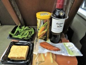 本日、日川協常任幹事会にて大阪へ。ちょうど孫が帰る日だったので新大阪まで一緒に行ってバイバイ。新大阪まで車でも良かったが、たまにはのんびり小旅行気分でとJR。浦安発9:40分→倉吉にて「特急スーパーはくと6号」→姫路にて新幹線「のぞみ128号」12:49分発→新大阪13:18分着。ここで孫を見送り、母親へ「のぞみ128号、いま新大阪を出ました。東京着は15時53分、16番ホーム、14号車の後ろです。よろしく」とメール。午後2時より大阪駅前第2ビル5Fの会議室で常幹会。出席12名。議事あれこれ、4時前に終了。4時過ぎに「無事に台風をキャッチできました。ありがとうございました!」とメールが入って一安心。帰りの「スーパーはくと11号」は大阪駅からも乗れるが、時間もたっぷりあったので新大阪へ。乗車前に「ひとり宴会」用のワインとおつまみあれこれゲット。乗車して直ぐに宴会開始。姫路あたりでワイン空っぽ。