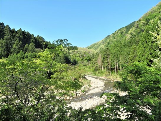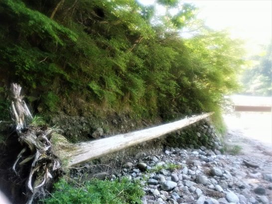 外出予定のない休日の朝は、いつも9時頃までベッドでまったりしている。が、今日は家内が「久しぶりに山へ!」というので7時起床。朝食を済ませてから2人で、昨秋から放置したままの山小屋へ。雲ひとつない快晴で、20分余りの快適なドライブ。里のほうでは初夏のようだったが、山はまだ早春の雰囲気で、小屋周辺の雑草もまだ驚くほどではなく1時間も作業したら、まずまず綺麗になった。敷地の端から河原を覗いたら、大きな倒木が石垣の上に乗っかっている。何とかしようと、鋸を持って河原に降りたが、余りにもでっかい(写真③)ので手を付けることなど出来ずギブアップ。自然に朽ちるのを待つのがベストか。本日、8,071歩。