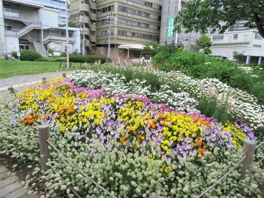 本日(30日)、浦安駅、朝7時53分発に乗車 → 倉吉にて特急「スーパーはくと4号」に乗り換え → 11時ジャスト三ノ宮着。私が知っていた昔の三ノ宮と様子が違うので、ぶらぶら見て回って、アバウト飲み込めた。昼食は北海ラーメン。阪神西宮の会場着は12時20分。まだ少し早かったので周囲をブラブラ。写真①②は、市民会館前の花壇。