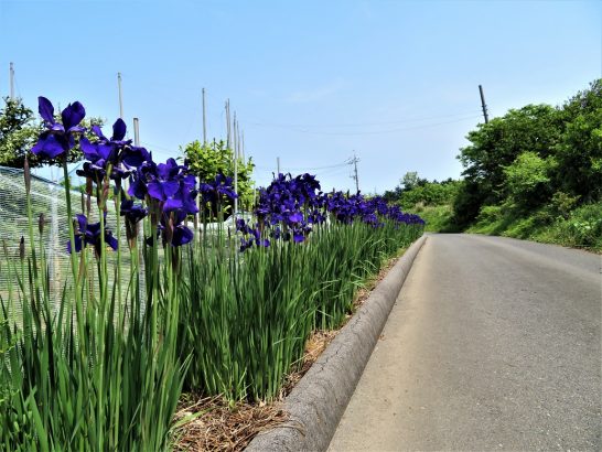 本日、五月らしい爽やかな快晴。気温もぐんぐん上がって、松江では最高気温27℃の夏日だったとのこと。ここらあたりも25℃を超えていたのではないか。本日、昼前散歩と夕刻散歩で8,225歩。 写真①②、私のパワースポット「東伯第3跨道橋」より西(米子方面)と東(鳥取方面)を見る。③、跨道橋へ行く途中の花菖蒲? この季節になると思い出す句いろいろ。
