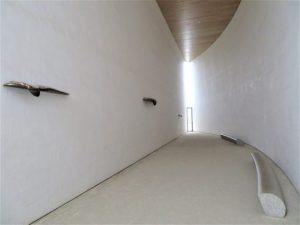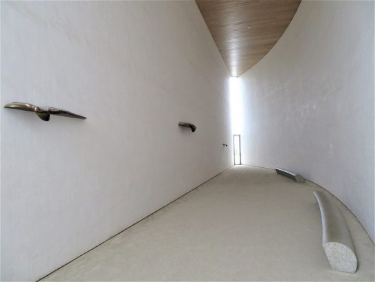 本日、8時40分にホテルのレストランに入ったら客は私1人だった。このアウィーナには何度も泊まっているが初めてのこと。広い窓側の席で通りの人たちを眺めながら、9時過ぎまでゆっくりいただいてから出発。南久宝寺の問屋にて依頼したブツ受け取り、ほか3軒よりチマチマ仕入れ。問屋街10時30分出発。帰路、中国道の美作インターで降りて【奈義町現代美術館】に立ち寄る。写真①、美術館全景。右側に見える丸い建造物は(写真②)、【太陽】を象徴している。狭い螺旋階段を上がると、この円筒形の内部に入れる。写真③は内部の様子。写真④は【月】をイメージしたもの。反響(エコー)が凄くて靴音だけでも響いていた。写真⑤は【大地】をイメージしたもの。いずれも難解な川柳と同じように「分かる分からない、ではなく、感じる感じない」で受け止めるべきだとは思うが…。残念ながら、私はそれほど感じることもなく、大きな刺激も受けなかった。同時に開催されていた木村克朗の個展(写真⑥)も、残念ながら「ふ~ん…」ぐらいの感じ方だった。私の感性が鈍いのだろう。来館者は私以外に中年のカップル1組だけで、その2人もいつの間にかいなくなったので、私1人、アバウト1時間、それぞれの静かな空間でゆっくり休憩できた。(瞑想はできなかったが…)。美術館で休憩した後、津山インターから再び中国道へ。院庄インターで降りて、久しぶりに苫田(とまだ)ダムをパチリ(写真⑦)。のち、人形峠~倉吉経由で午後3時40分帰宅。塔句会&瓦版句会でお世話になりました皆さま、声をかけて下さった皆さま、サンキューべりマッチでした! 問屋街ウロチョロと夕刻散歩で本日、9,773歩