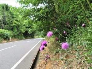 というような、堅実な国民性にあるのではないか。加えて、諸外国に比べるとセキュリティーがしっかりしていて偽札が出回りにくいことも要因の1つとのころ。だが、番組では、銀行各社が「キャッシュレス化を進めてゆく」と言っていた。札を数えたり現金輸送の警備などに要する経費節減が狙いとのこと。現在の日本では慌てて進める必要もないと思うのだが…。私自身、大阪の私鉄や地下鉄では【ピタパ】。問屋への支払いは【カードでATM】と、いつの間にかキャッシュレスにほんの少し首を突っ込んでいる。 本日、昼前と夕刻の散歩で7,823歩。写真①、散歩道のアザミ。②、この畑も飼料用トウモロコシ。今は10センチほど。