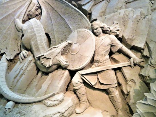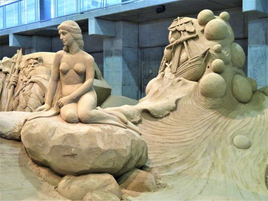 砂像を造り上げているのは、欧米各国のプロフェッショナル。展示シーズンが終わると壊して、次のテーマに向かって来日しているようです。