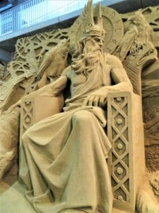 本日の主な目的地は鳥取砂丘の横にある【砂の美術館】。ここには数回来ているが、毎年テーマが変って展示内容も新しくなっている。今年は【砂で世界旅行・北欧編】ということで、北欧の伝説とか神話の世界を描いていた。が、馴染みのない世界で、「精巧に作っているな~」と感嘆するのみ。像が示している世界にまでは入ってゆけなかった。 写真下: 展示されている砂像の一部。砂像の下は、「網元」での昼食。ひるめしにしては豪華で、先ずビール! その後はペットボトルに忍ばせていた【黒霧】をストレートでグイグイ。その所為で帰路はコックリコックリだった。 いちばん下の花は、途中に立ち寄った「道の駅」で売っていた花の苗。 本日、展示を見たり土産物を物色してブラブラしたりして、午後5時に帰着したとき6,000歩を超えていた。6時前にいつもの総合公園に散歩に出て8,742歩になった。