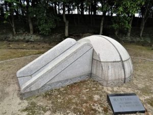 写真上:投句を済ませたあと、選にかかるまで1時間ほどあったので、会場の付近をブラブラ散歩。彫刻の広場というようなのがあったのでパチリ。この彫刻群のすぐ後ろは笠岡湾。大会のときは歩数が少ないが、この散歩のおかげで本日7,756歩だった。