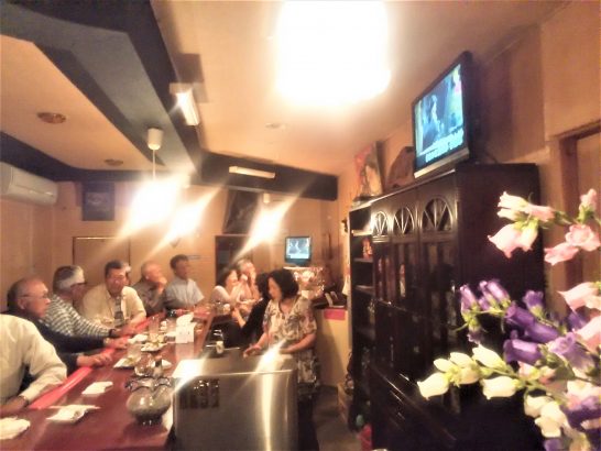 本日午後7時前より、コンテナハウス仲間に悪友Kを加えて8人でおしんへ。おしんはカウンター席だけ。12~13名も入れば満席になるが、ウィークデーに貸し切りにすると他の客に迷惑をかけるので、貸し切りにはせず。それは正解で、飲んで歌っているうちに常連さんが数人来て、満席に。大いに盛り上がって、9時に運転代行を呼んでいた皆さんとバイバイ。その後30分ほど残って「夏は来ぬ」を歌ってバイバイ。本日夕刻の散歩せず(雨あり)5,543歩。