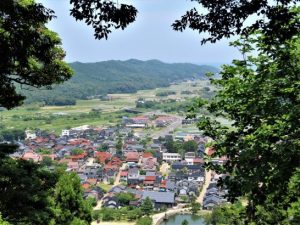 写真上から。①、この鳥居をくぐって、正面の石段を登って出発。頂上で10分ほど休憩して、この鳥居に戻ってくるまで50分だった。②、木陰に六角堂。③、古い石積みの段々。④、城山神社。⑤、神社の石碑。⑥、天守跡(頂上)から鹿野の町の風景。⑦、城跡から下りて、駐車場横の堀を見ながら昼食。木陰の涼風が快適だった。 本日、天守跡までの往復では6,000歩も稼げず。夕刻の散歩も足して8,116歩。